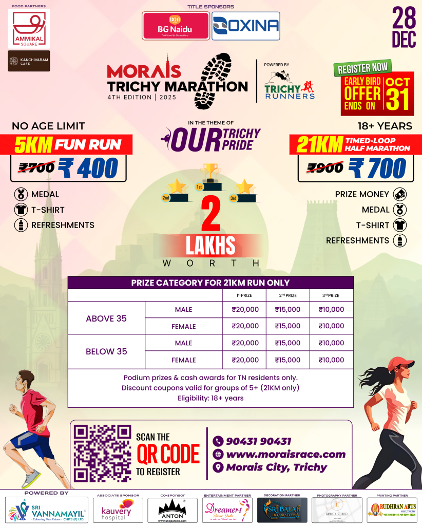 Don’t miss this chance to save and secure your spot at the Morais Trichy Marathon 2025.