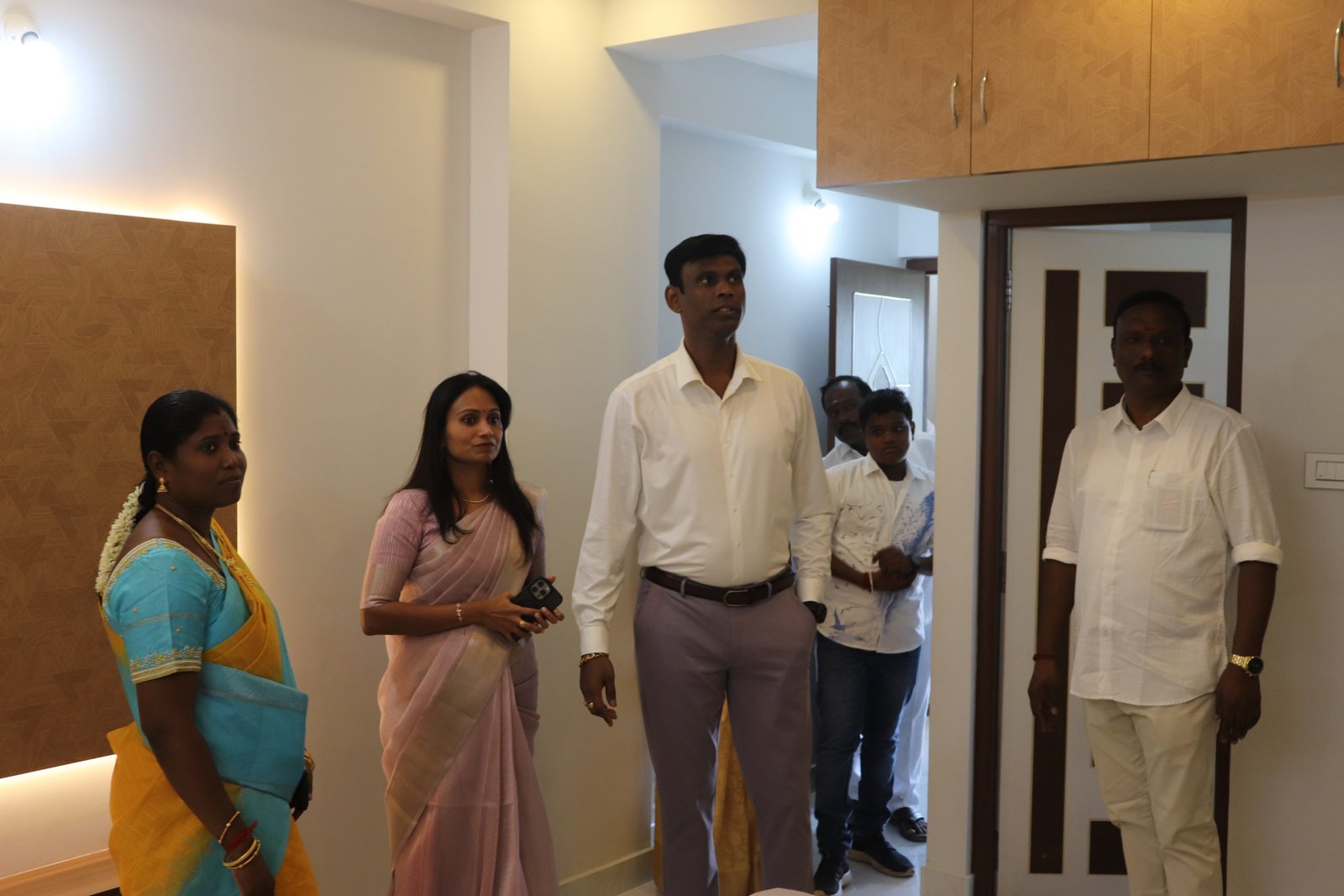 At the entrance of MM Divine Apartments, Mrs. Priya Morais and Mrs. Balamurali together cut the ceremonial ribbon, marking the official opening of the celebration. This simple yet symbolic gesture set the tone for the day, representing new beginnings for every family about to step into their dream home.