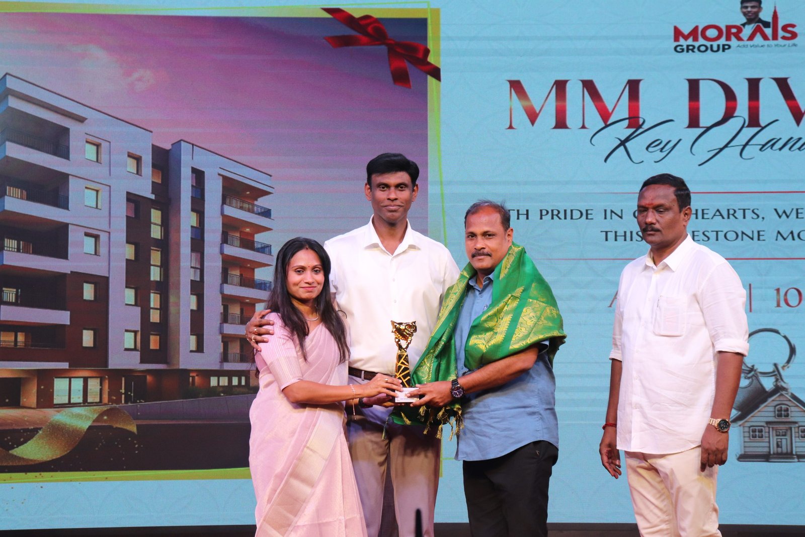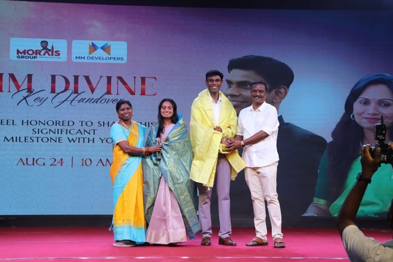 The much-anticipated Key Handover Ceremony for MM Divine 2BHK Apartments at Morais City unfolded with grandeur, marking yet another milestone in Trichy’s most premium township. It was not just an event—it was a celebration of dedication, trust, and the joy of new homeowners stepping into their dream residences.