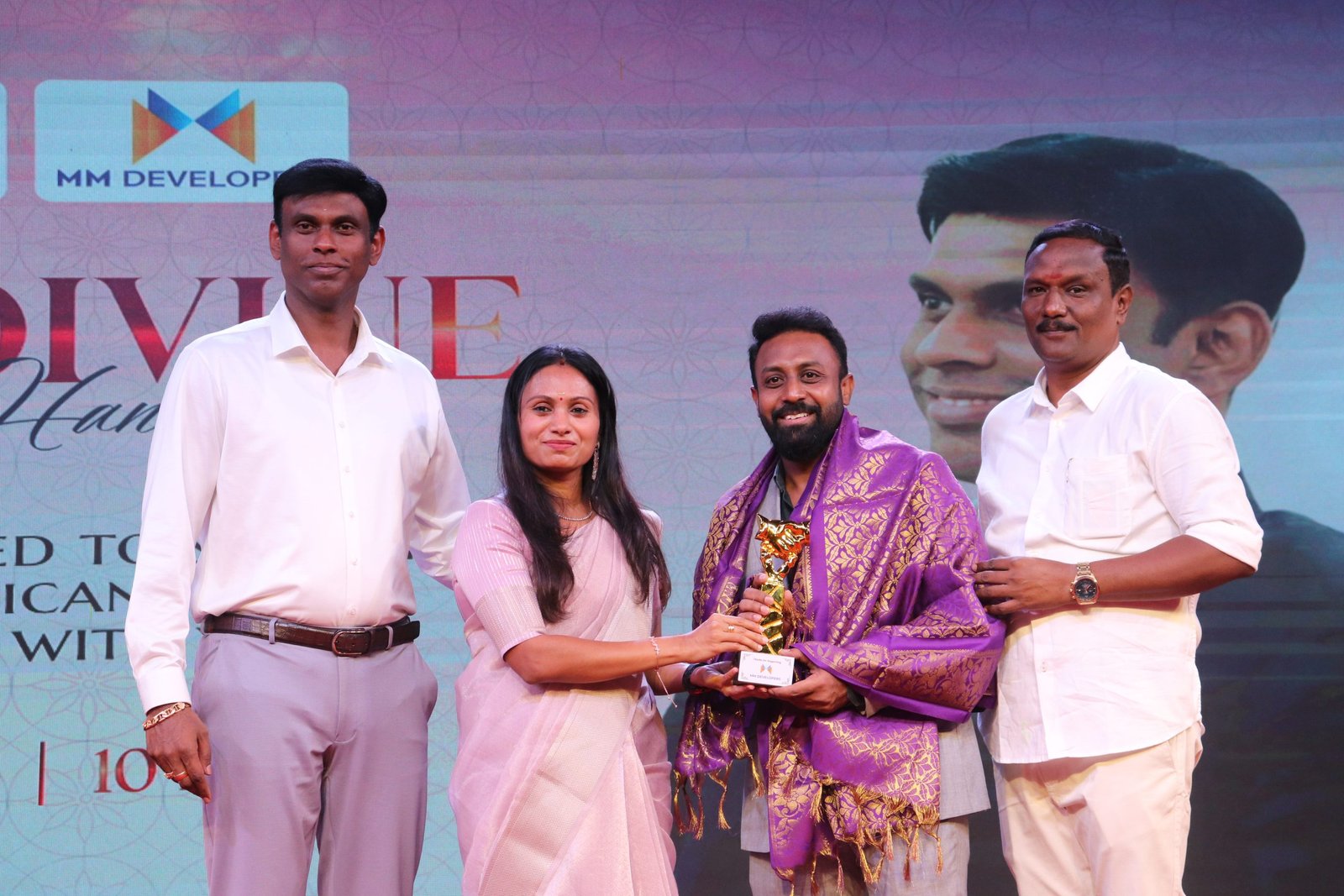 The first moments on stage were filled with warmth and respect, as Mr. Balamurali and his wife honoured Mr. Leyronne Morais and Mrs. Priya Morais with shawls and a personal memento, recognizing their vision and relentless commitment to building communities that elevate Trichy’s real estate landscape.